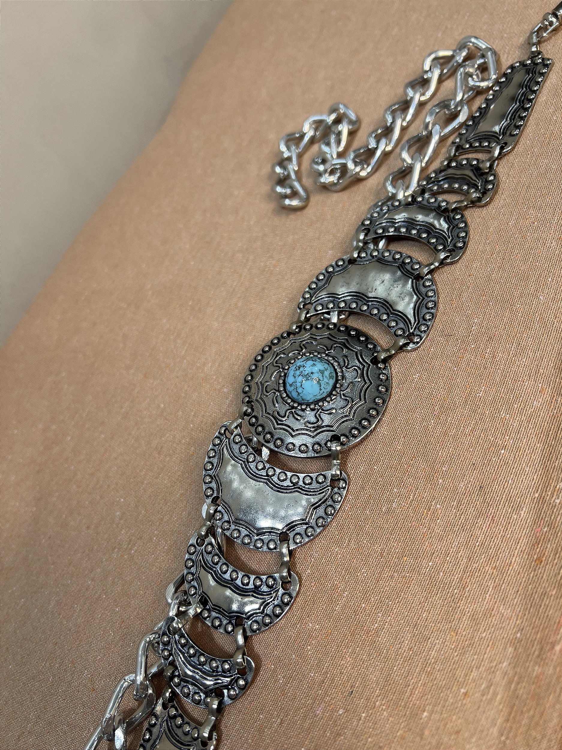 Cinto Correntaria Pedra Turquesa Max – Sofisticação e Estilo Boho Chic