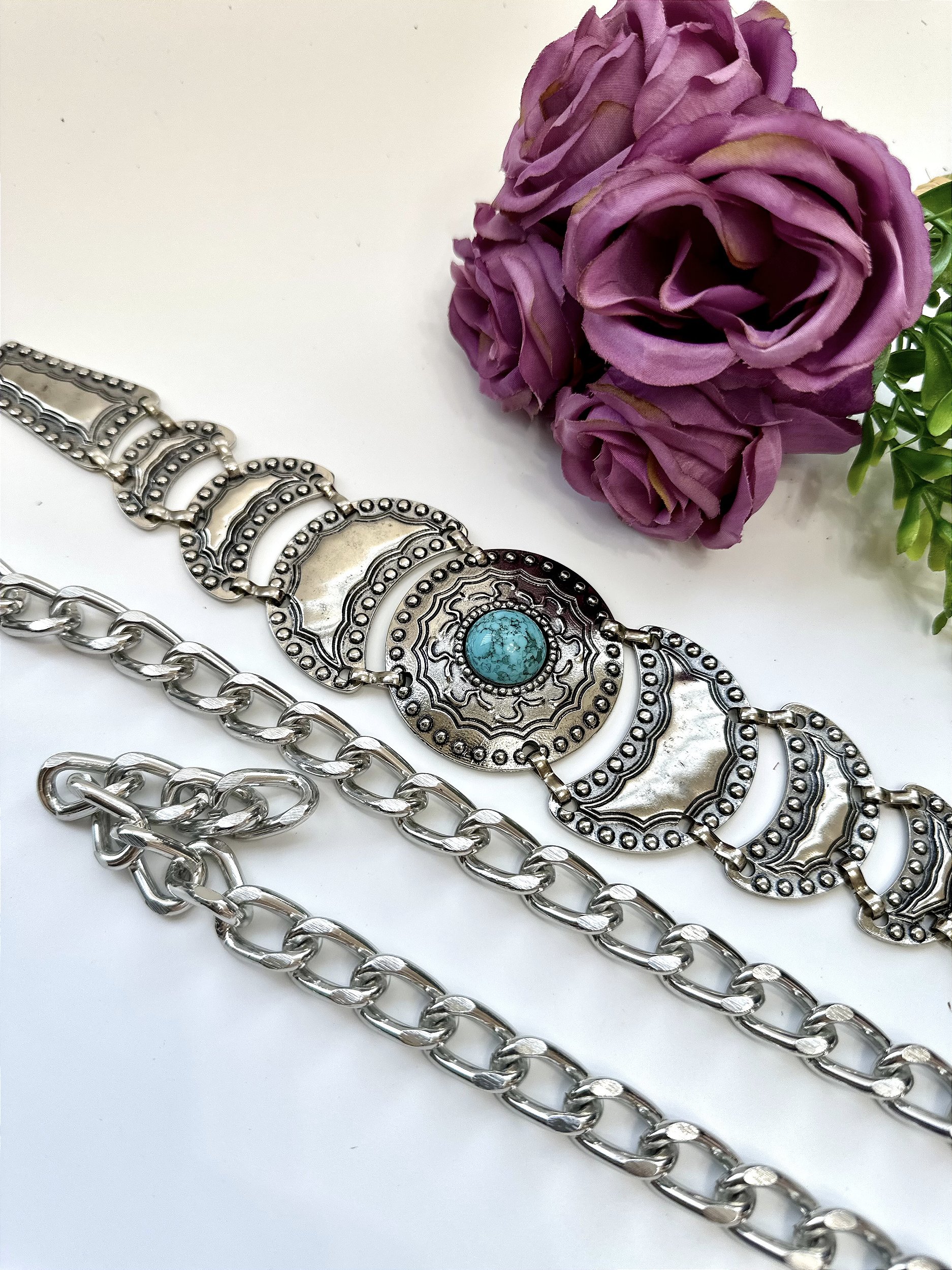O Cinto Correntaria Pedra Turquesa Max é o toque especial que transforma qualquer produção em um visual estiloso e único.
