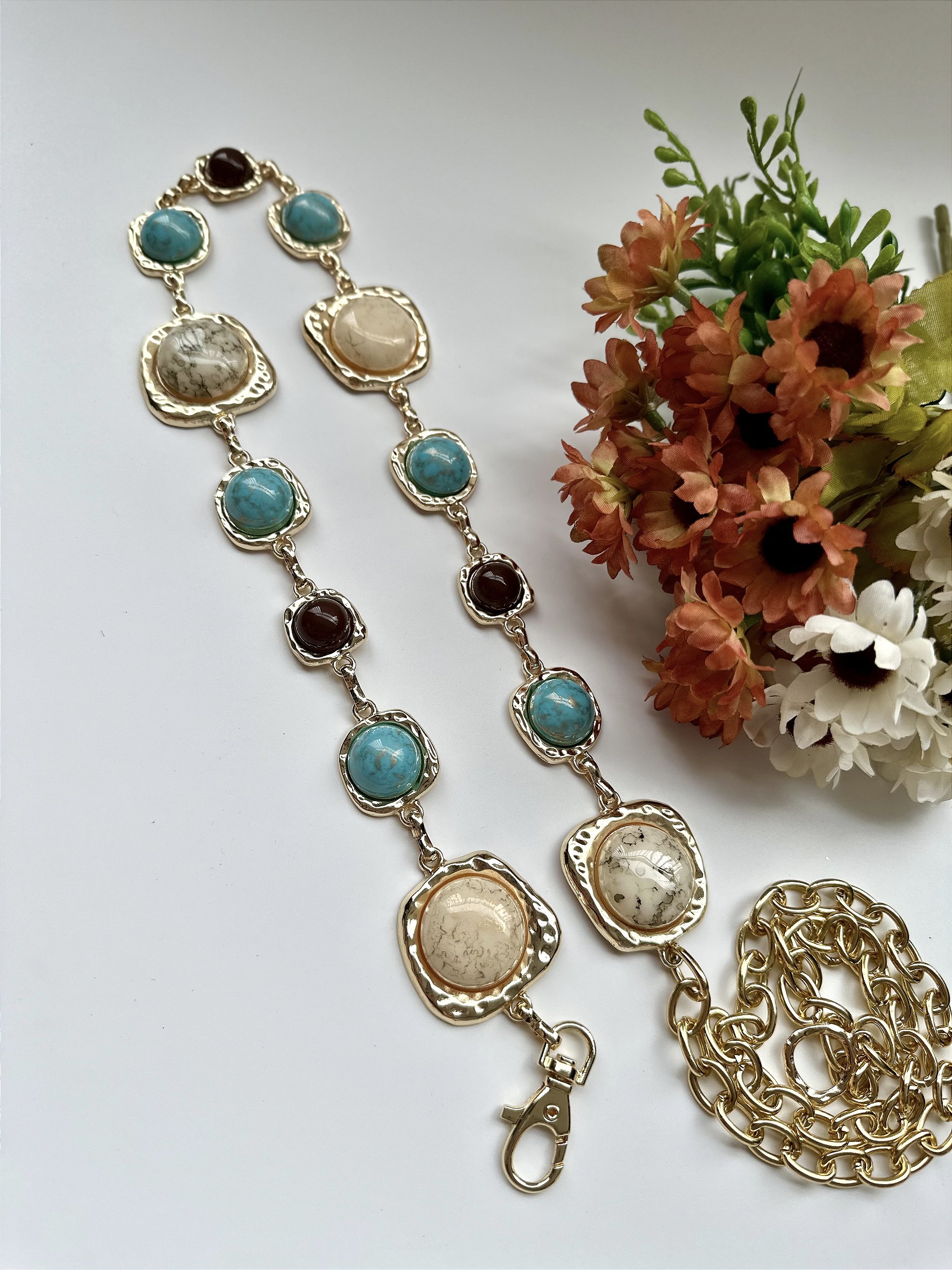 O Cinto Correntaria Pedras Boho é o acessório perfeito para quem busca um visual autêntico e sofisticado. Com um design de correntes delicadas e pedras naturais, ele traz um toque rústico e elegante, ideal para compor looks boho-chic e modernos.