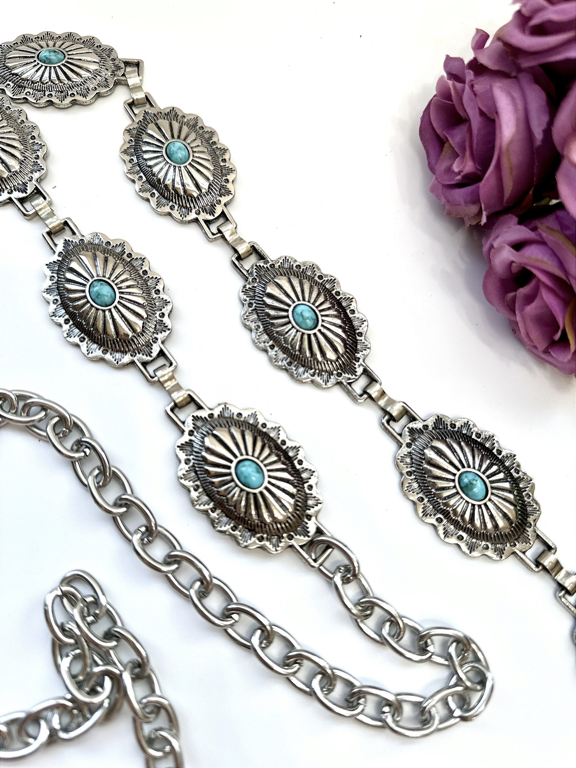 CINTO DE METAL BOHO COM PEDRA TURQUESA